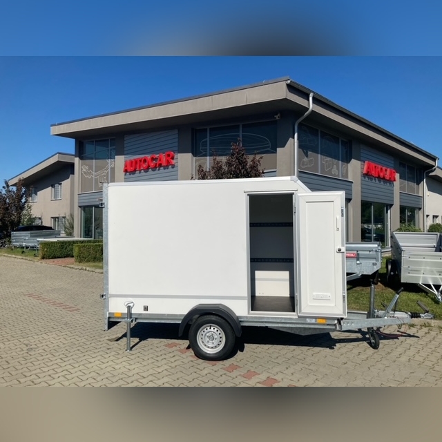Jednonápravový brzdený skriňový prívesný vozík so skosením do 1300 kg je kompaktným a praktickým dopravným prostriedkom, často využívaným na prepravu rôznych nákladov. Steny prívesného vozíka sú vyrobené z preglejky, podlaha je z vodovzdornej preglejky. V štandardnom vyhotovení je skriňa v bielej farbe s bočnými dverami a rampou. Príves je vybavený zadnou rampou, ktorá slúži ako nájazd. Základná výbava zahŕňa úchyty na podlahe, ktoré slúžia na upevnenie nákladu pomocou popruhov alebo lana, aby sa zabránilo jeho pohybu počas prepravy. Okrem toho majú tieto vozíky zadné oporné nohy, ktoré stabilizujú vozidlo počas nakladania a vykladania nákladu. Ďalšou súčasťou sú zakladacie kliny, ktoré sa využívajú na zaistenie kolesa prívesu, čím sa zabráni jeho pohybu počas státia.