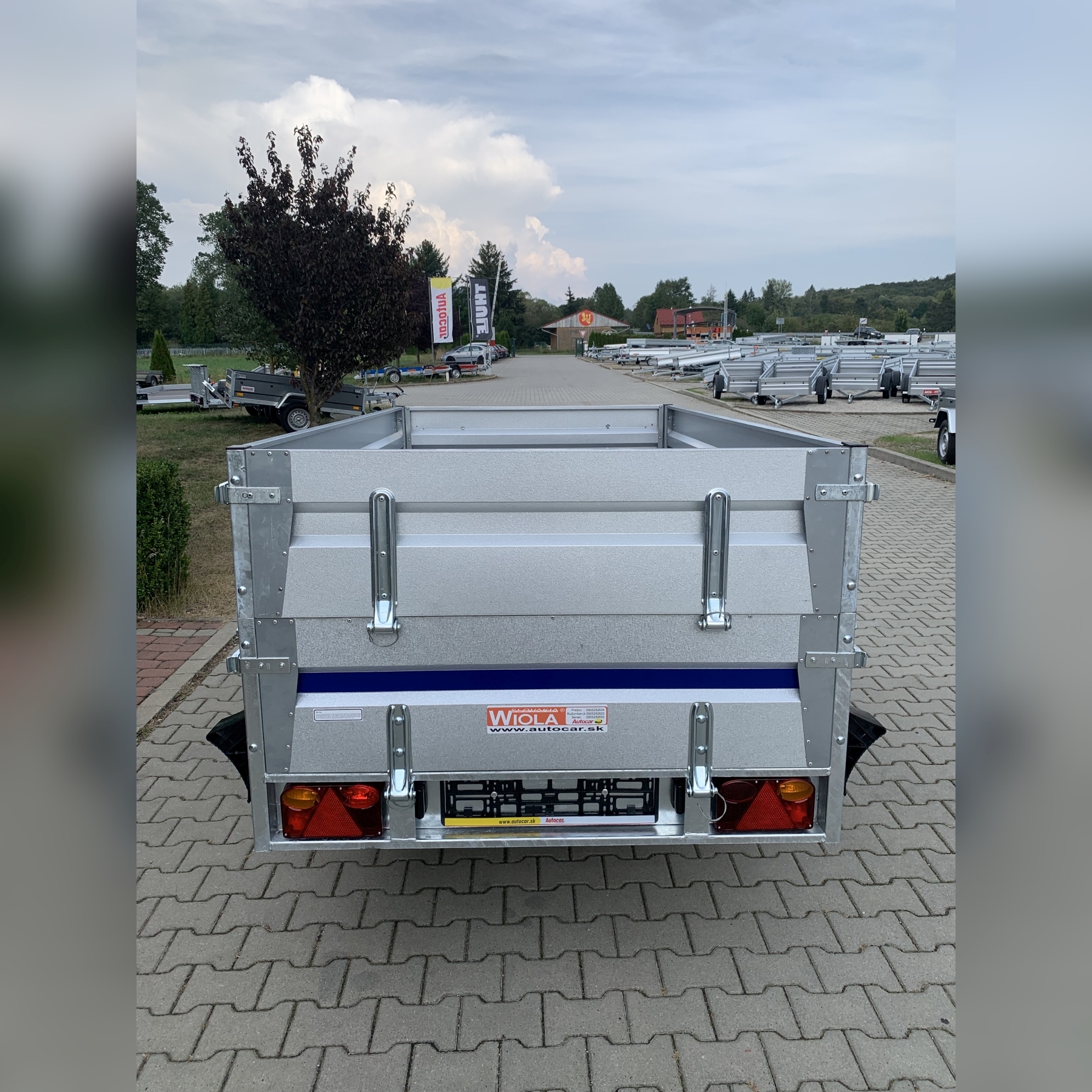 Tento jednonápravový nebrzděný sklopný přívěsný vozík s rozměry 2420 x 1320 x 780 mm je vhodný pro různé přepravní úkoly. Jeho pozinkované bočnice zajišťují ochranu před korozí, což zvyšuje jeho životnost a odolnost vůči povětrnostním vlivům. Překližková podlaha poskytuje vozíku pevný a rovný povrch pro náklad. Nástavbové bočnice činí tento vozík připraveným na každý náklad. V základní výbavě má: zadní otevírací čelo, opěrné kolečko s držákem, gumová krytka přívěsného kloubu, zakládací klíny, podlahový úchyt 4x a nástavbové bočnice. Přívěs má záruku 2 roky a je konstruován na rychlost 130 km/h.