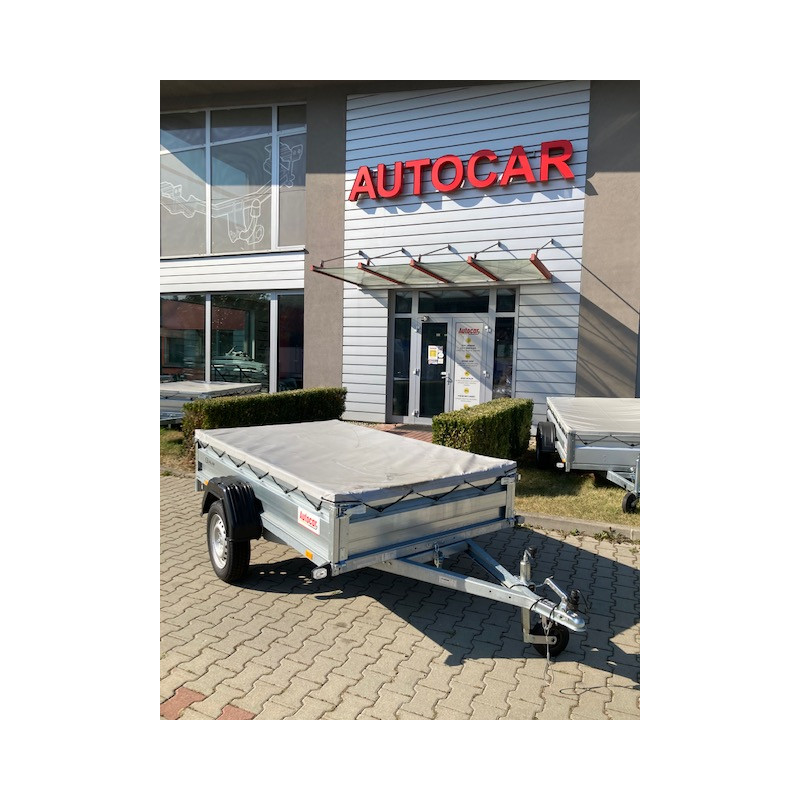 Valníkový jednonápravový nebrzděný sklopný přívěsný vozík s koly vedle ložné plochy a rovnou plachtou. Všechny prvky jsou žárově pozinkované - rám, oje, konzoly, podlaha je vyrobena z voděodolné překližky a za studena lisované bočnice . Dlouhé konzoly nápravy jsou našroubovány ve třech montážních bodech. Toto řešení zaručuje ještě větší tuhost a trvanlivost přívěsu než většina použitých dvoubodových sad.